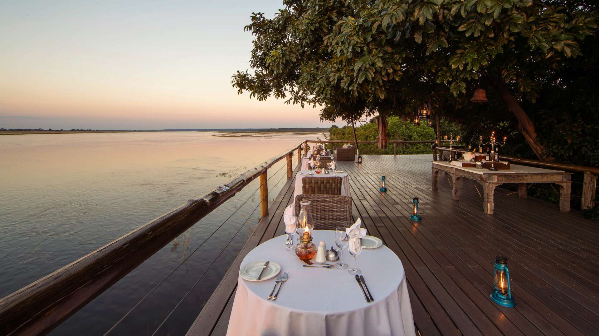 Sat beside the meandering Chobe River where herds of elephant and impala come to drink, the setti...