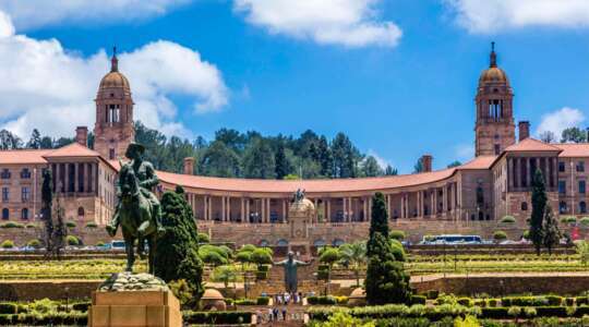 A journey on the luxurious Blue Train or Rovos Rail, connecting Cape Town and Pretoria, showcases South Africa’s beautiful landscapes.