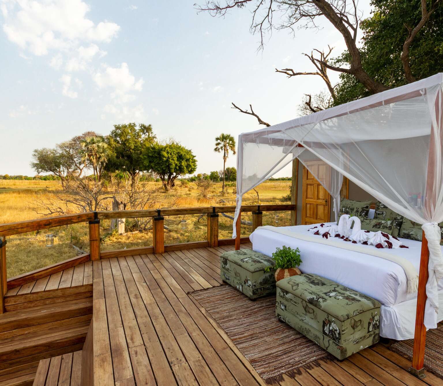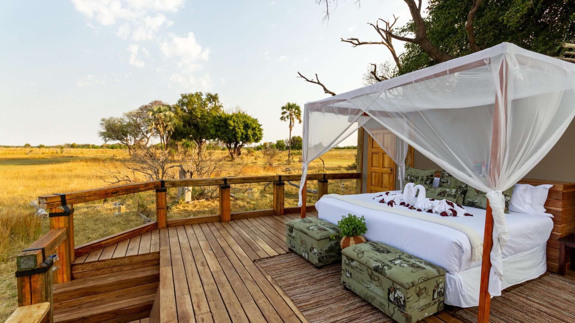 Providing year-round access to the Okavango Delta, hear hippos graze beneath your suite at Camp Okavango.