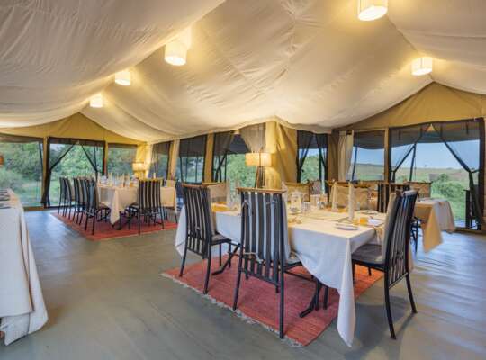 Luxury and tranquillity await at this exclusive tented camp raised above the Mara plains for spectacular views.