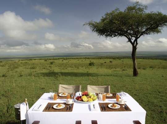 A bush breakfast after an early-morning game drive or balloon safari out on the Mara plains, surrounded by wildlife is a special experience