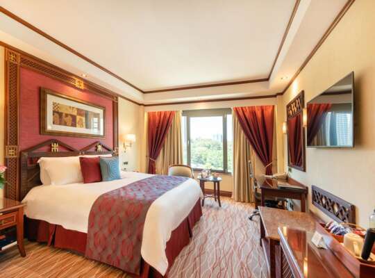 The comfortable rooms are traditional in style, with air-conditioning and city or garden views. A range of spacious suites are also available.