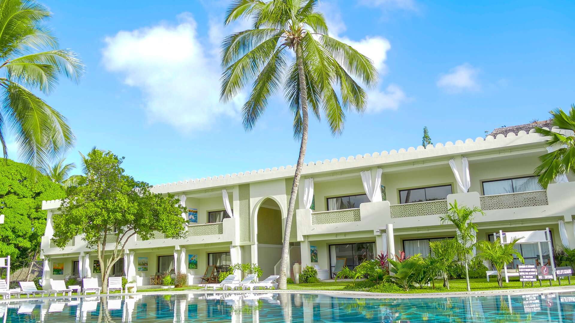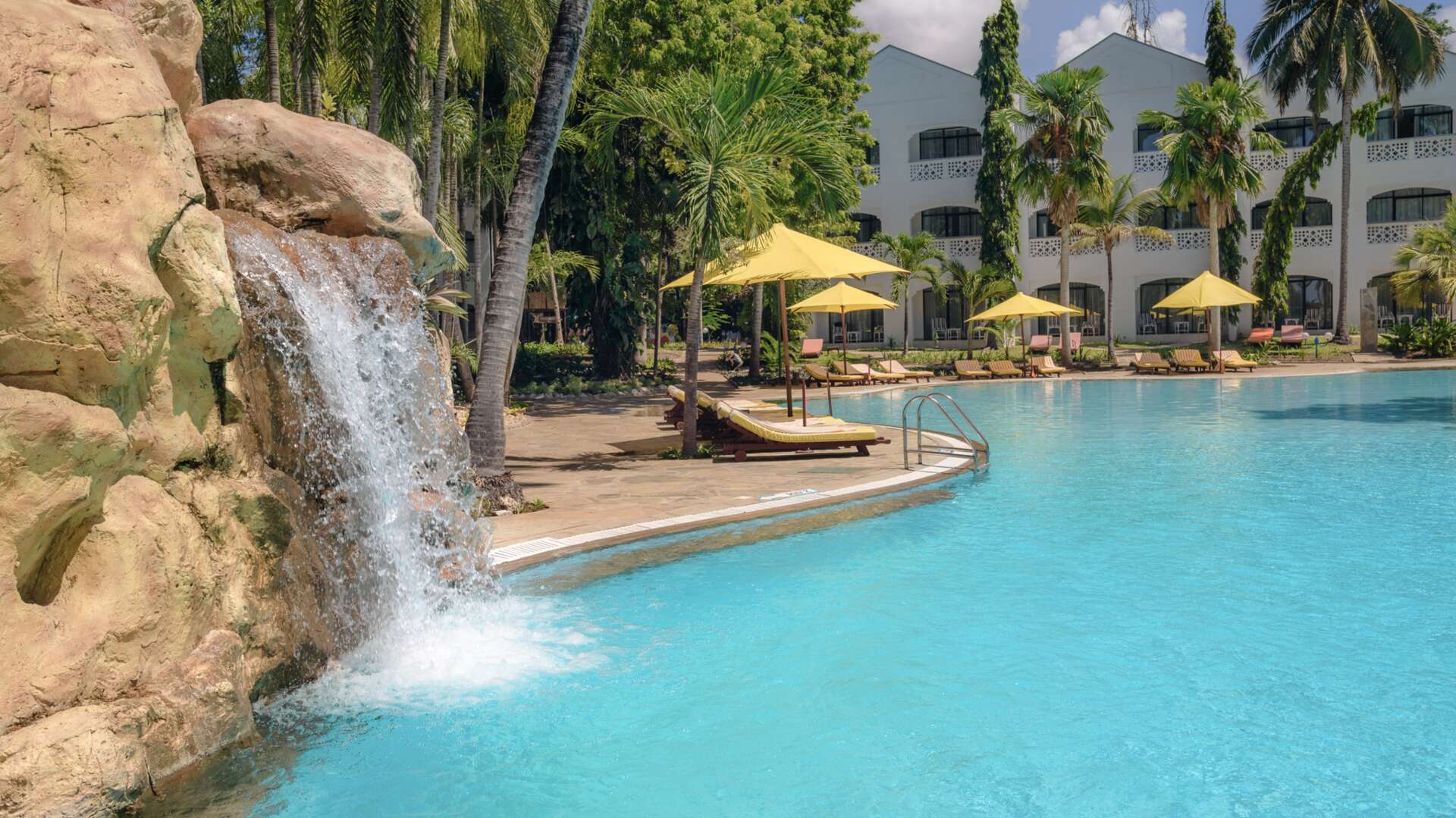 Set on 23 acres of gardens overlooking the Indian Ocean, Sarova Whitesands is ideal for a relaxing beach break after a safari.