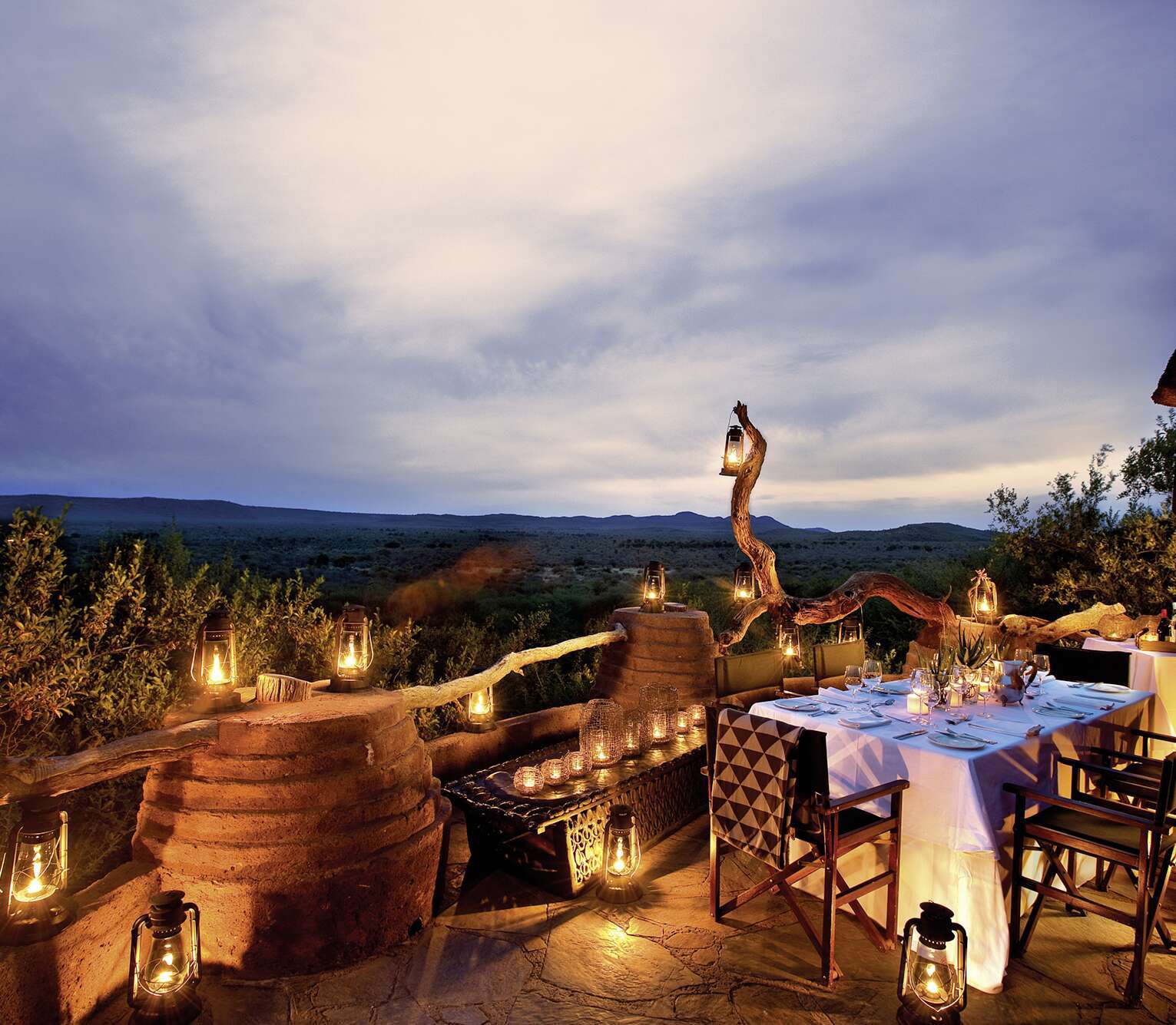 This luxury mountainside lodge in malaria-free Madikwe Game Reserve has spectacular views.