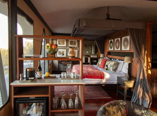There are just four air-conditioned tents, created with a nostalgic safari feel. The whole camp can be booked for exclusive use making it a good choice for friends travelling together or if you are celebrating a special event.