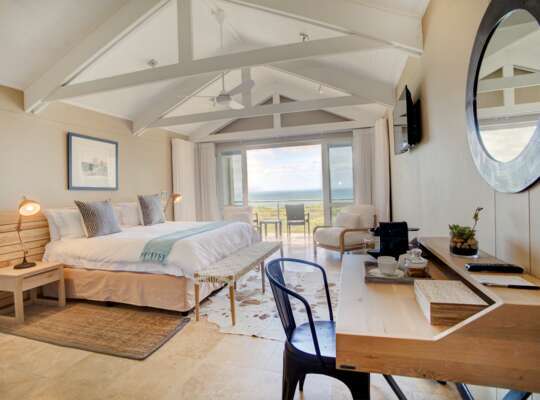 Each of the 12 en suite rooms are individually decorated with neutral colours and pale pastel shades with South African art on display. Enjoy the garden, mountains or ocean views from your private balcony or patio.