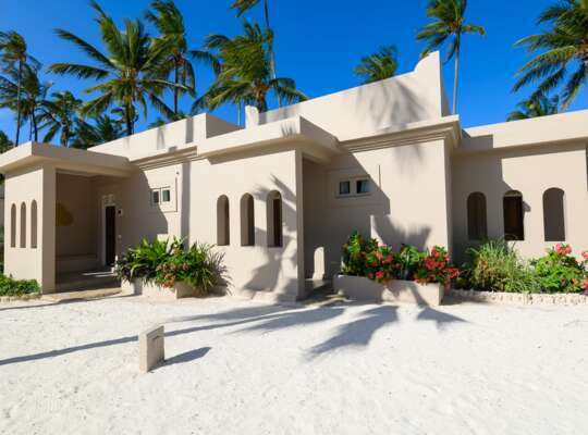 Scattered along the beach and amongst the tropical gardens, there are 105 rooms and villas, each with a Swahili-influenced décor and private veranda.