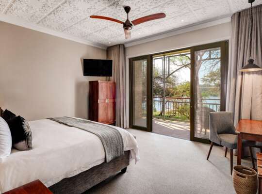 All of the rooms and suites face the Zambezi River and have a private balcony or veranda. The interiors are modern with contemporary bathrooms. Families enjoy the space of the Deluxe Suites with two bedrooms linked with a shared lounge and veranda. The Honeymoon Suite is particularly special with a four-poster bed, romantic day bed, outdoor shower and a golden bathtub.