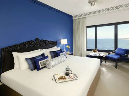 The rooms throughout the resort are bright, fresh, and elegantly simple, accented with tasteful pops of colour to create a relaxed coastal feel. For guests seeking sweeping panoramas of the Arabian Sea, the Deluxe Sea View Rooms offer beautiful ocean‑facing outlooks from their well‑appointed spaces. Those who prefer a quieter, nature‑embraced setting will love the Aguada Cottage Garden View, nestled amid lush greenery for a serene and secluded stay. And for the ultimate indulgence, the Premium Sea View Suite combines spacious luxury with breathtaking sea vistas, making it ideal for travellers looking to elevate their Goan escape.