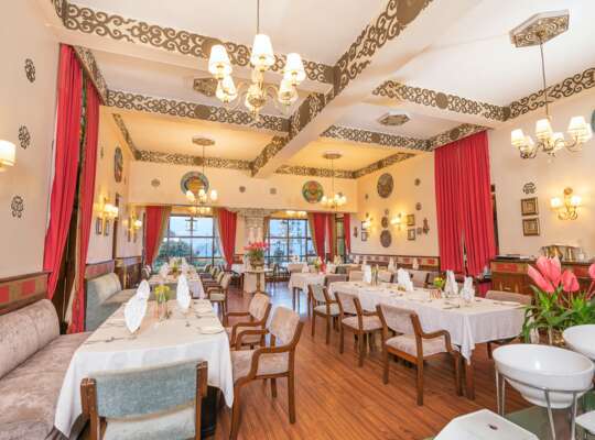 The elegant Shangri La Dining Room serves a range of Asian and European set menus. End your evening with a visit to the Dragon Bar, a fine example of Sikkimese architecture, where you may want to try tongba, a local millet fermented beer.