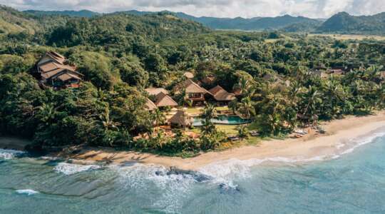 A palm-fringed paradise with a pristine private beach, glittering pools and straw-topped villas.