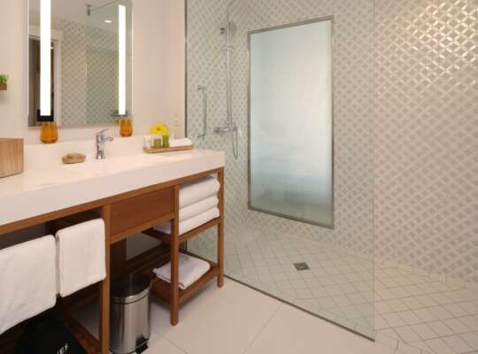 The rooms are modern, airy, and unfussy, with clean lines and thoughtful touches that make them feel like a sanctuary rather than a crash pad. They all come with floor-to-ceiling windows and plenty of space to spread out, and the suites in particular are well worth the upgrade if you fancy a dash of indulgence and a balcony to properly soak up those sea views.