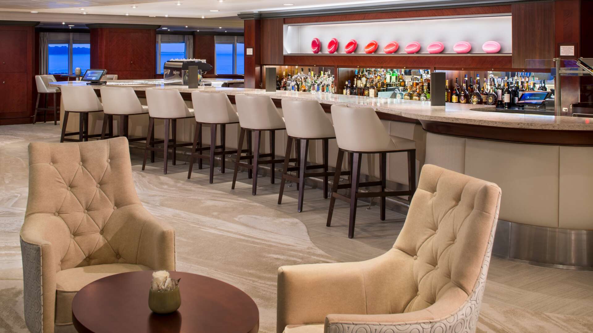 Azamara Pursuit’s small size means you can visit ports that larger ships can’t reach. She has a sleek design with a modern twist on traditional ship décor – there are dark wood fixtures and furnishings and marble features but with modern clean lines.