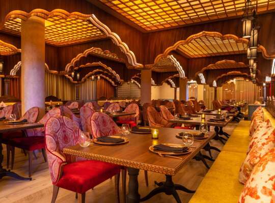 A vibrant Indian kitchen where rich spices, saffron-coloured sauces and lacquered decor combine to make dinner feel like an occasion.