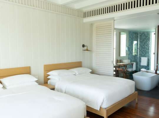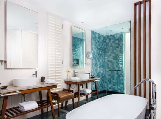 Rooms have space to spread out whether in a rooftop suite with a plunge pool or a beachfront room with sand just steps away.