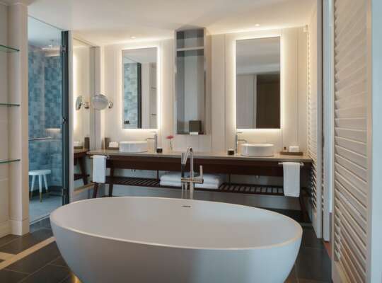Bright interiors, big windows, a private terrace and spa-style bathroom come as standard. You can choose from pool view, ocean view or beachfront rooms, or step it up a notch with a beachfront or pool view suite for extra room and luxury. Celebrating something special? The Plunge Pool Rooftop Deluxe Suite gives you all those luxury island vibes - sea views, Nevis views, your own private swims - without having to leave your room.