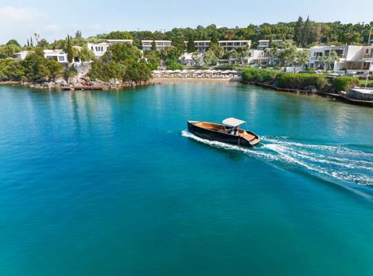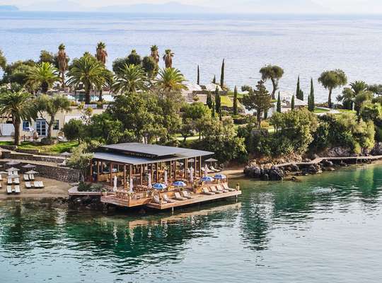 Nestled away on the private Kommeno Peninsula, this secluded resort embodies the romance of summer escapes. You can wander round the Italianate gardens and bask in the warm ocean air, escape to one of the three coves’ sandy beaches or retreat to the two-storey Elixir Beauty Spa. Alternatively, lounge by the elegant Grand Pool, head to the diving centre on the beach or take a sunset boat trip out to enjoy postcard-pretty views – then round off the day with exceptional dining by the waterside.