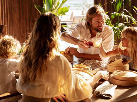 The 233 rooms have also been helpfully designed for couples or families. All have warm earthy tones and relaxing views of the mountains or out to sea. On a getaway for two, we recommend the intimate Sapphire Retreat, while families will love the spacious Sapphire Sublime Family Suite.