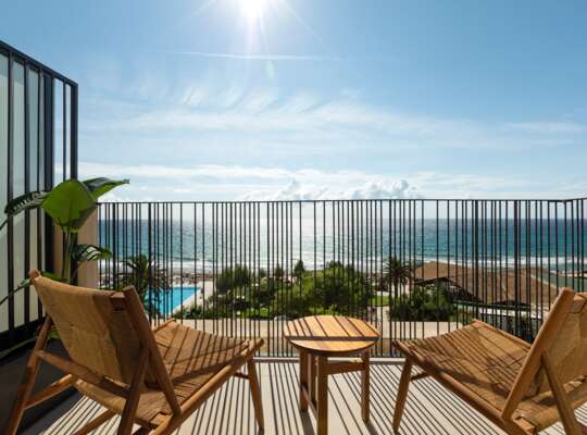 Relax at this modern, all-suite retreat, surrounded by 300-year-old olive groves and set on a golden-sand beach.