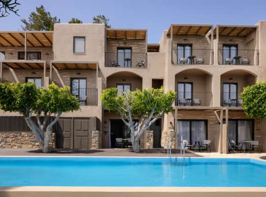 Set amid peaceful, leafy gardens, this sought-after spot overlooks one of Crete’s finest bays and makes an excellent base for exploring the island