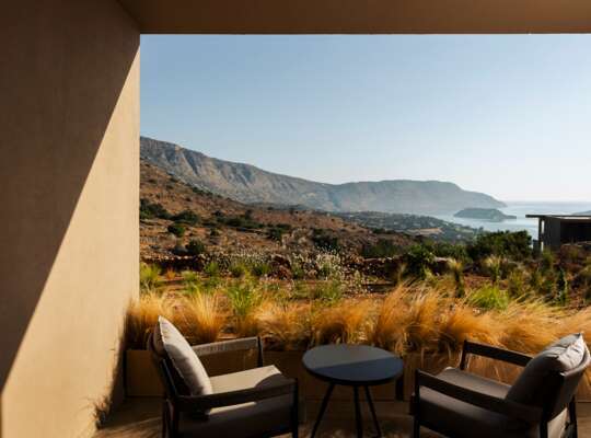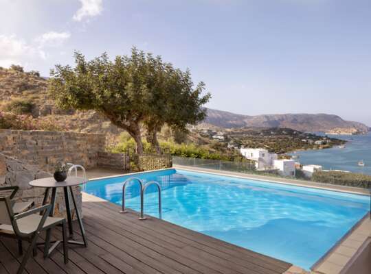 An adults-only hideaway on the outskirts of upmarket Elounda with unbeatable island views.