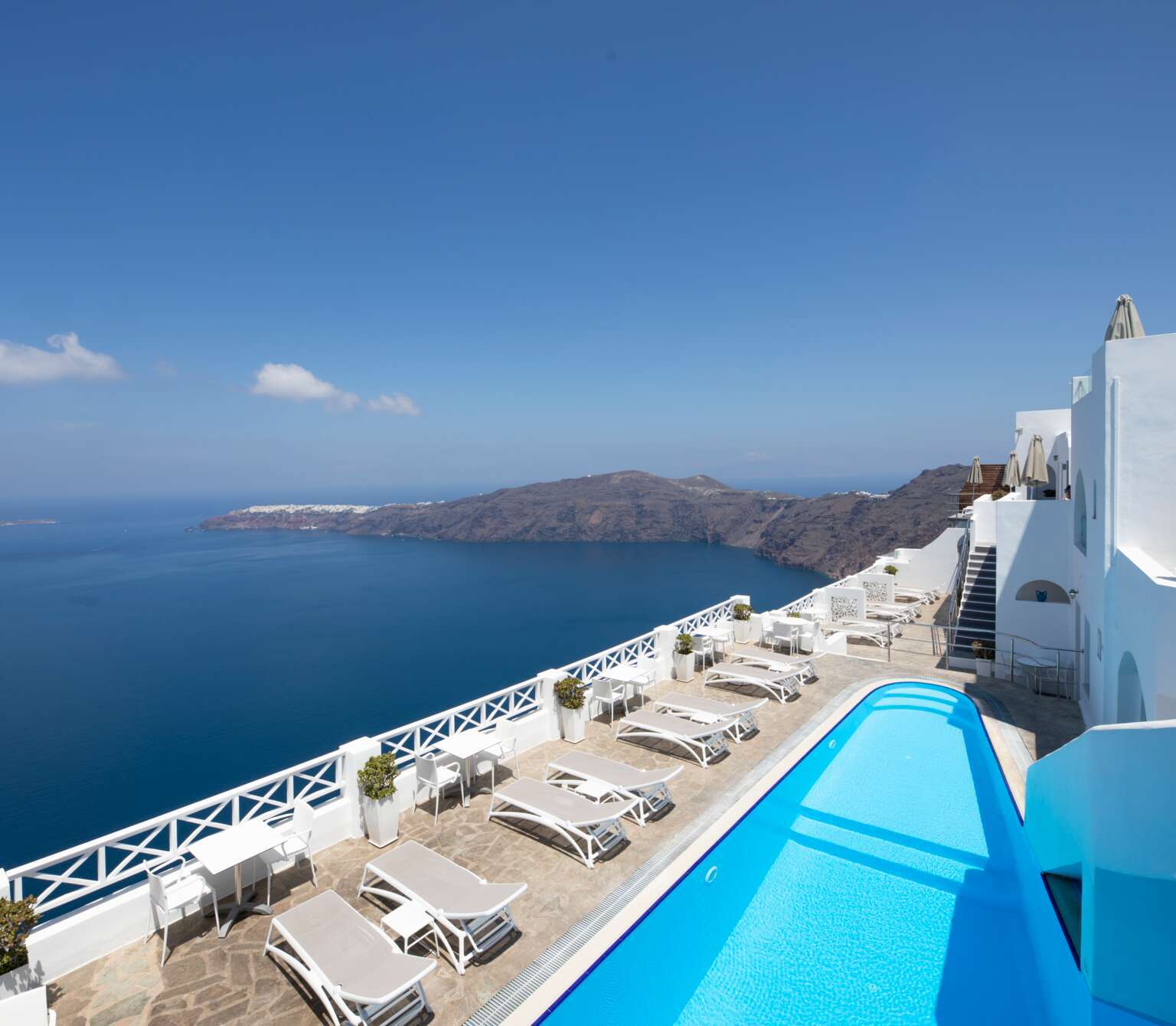 A sugar-white coastal stunner carved into volcanic rock, where every room comes with a private pool.