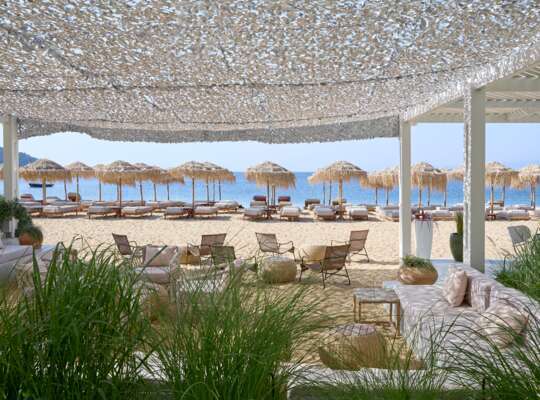 Three restaurants serve everything from Greek specialities to poolside snacks at Muses and fresh fish at PR Ammos beach restaurant. Beach service means cocktails, fresh juices and smoothies delivered straight to your sun lounger. If you’re travelling with children, a babysitting service gives you a chance to slink off for a sunset glass of Champagne.