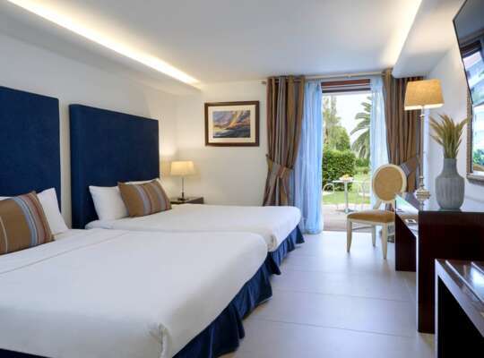 The 132 rooms and suites have a balcony, private garden, Jacuzzi or private pool. Club Double Garden View rooms are classic in design with a balcony overlooking the garden. Extremely spacious and stylish Two Bedroom Suites With Pool are the epitome of luxury with a wooden decked private pool and garden, separate living room, televisions in each bedroom and sea views.