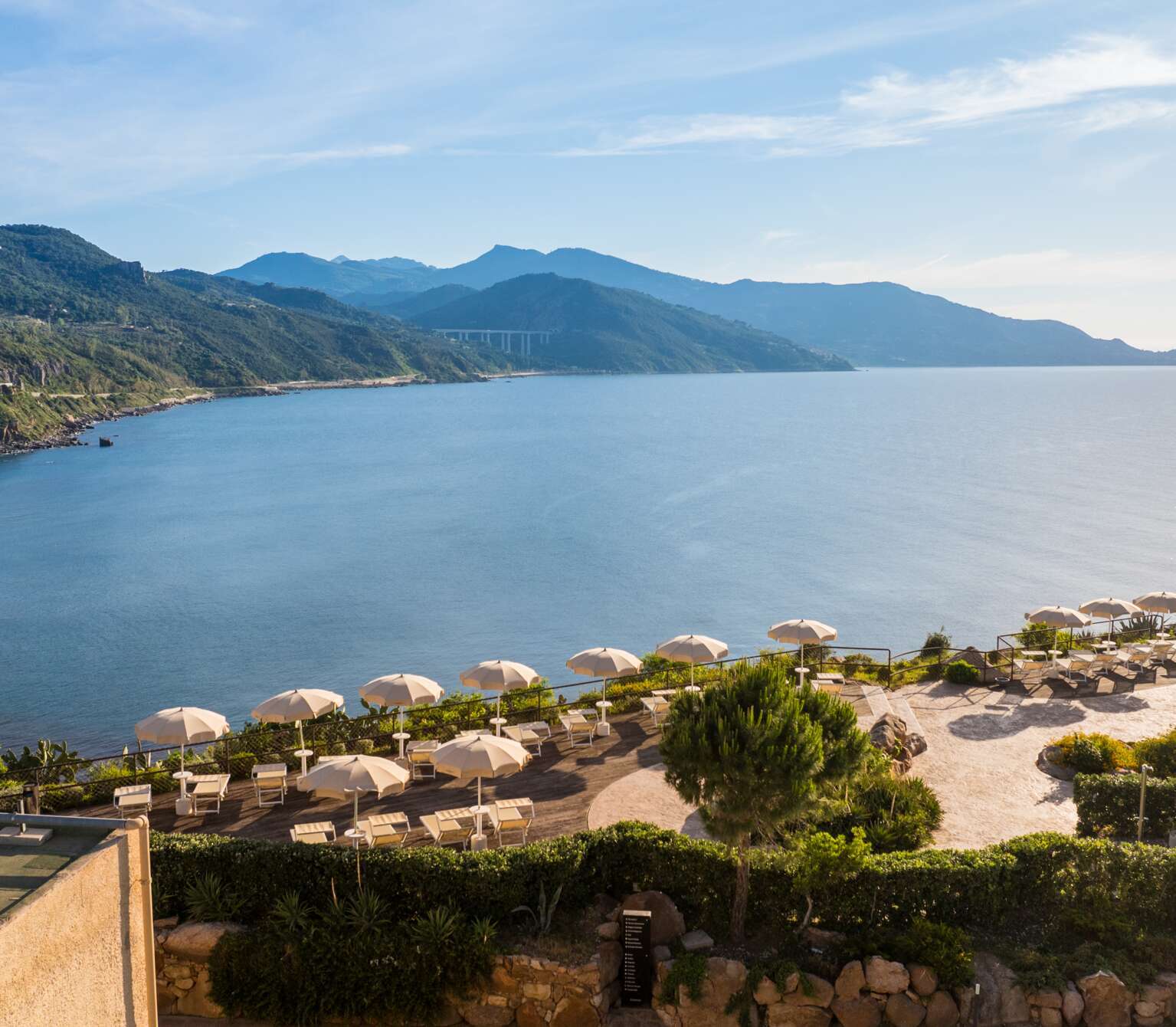 Perched on a pine-covered promontory between Cefalù and the Madonie mountains, Mangia’s Pollina Resort delivers one of the most dramatic vantage points on Sicily’s north coast