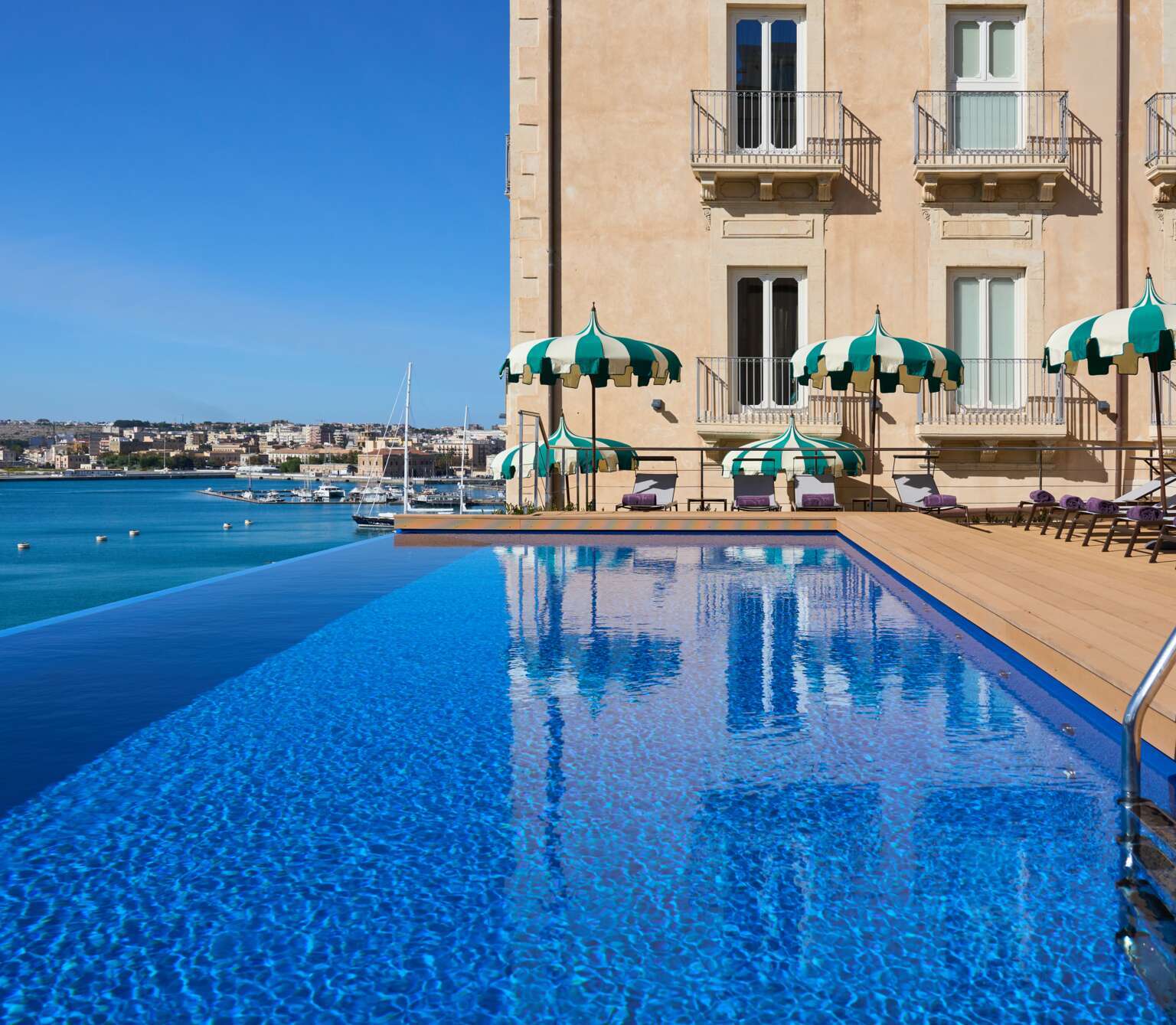 Sea in front, baroque Syracuse behind. Grand Hotel Des Étrangers occupies one of the most enviable addresses on Ortigia.
