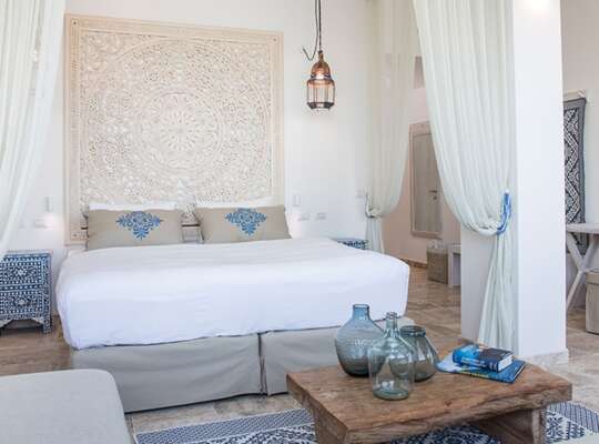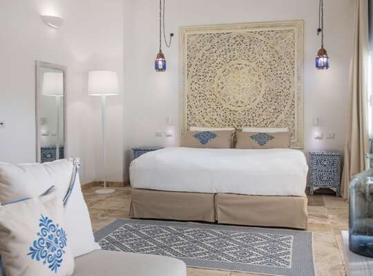 Accommodation ranges from well-proportioned double rooms through to spacious villas, with many offering views across the gardens or the bay. Families are particularly well catered for thanks to flexible layouts that allow additional beds or connecting rooms. The calming, Moorish‑inspired interiors and private outdoor spaces appeal just as much to adults travelling together as they do to families.