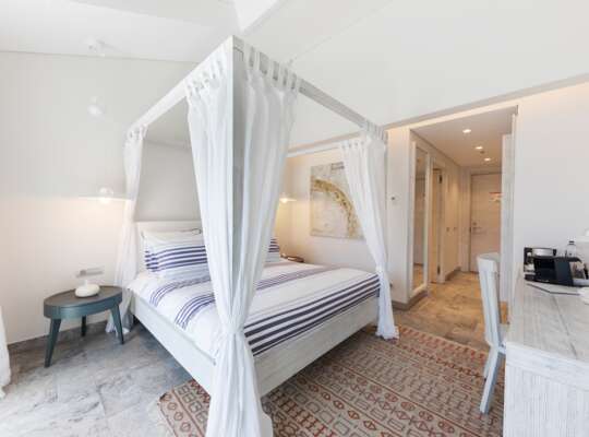 All of the 102 rooms and suites are chic and comfortable, decorated in light and bright colours and seaside-inspired tones. Superior Roof Rooms have two rooftop windows in a high sloped ceiling with blackout blinds as well as a small terrace. Standard Rooms are larger, though they don’t have a terrace. If you’re looking for extra space and a terrace, there’s the Superior Rooms, or the even more spacious Deluxe Rooms. The Deluxe Poolside Rooms offer direct access to the pool while the Junior Suites are slightly larger with a living area.
