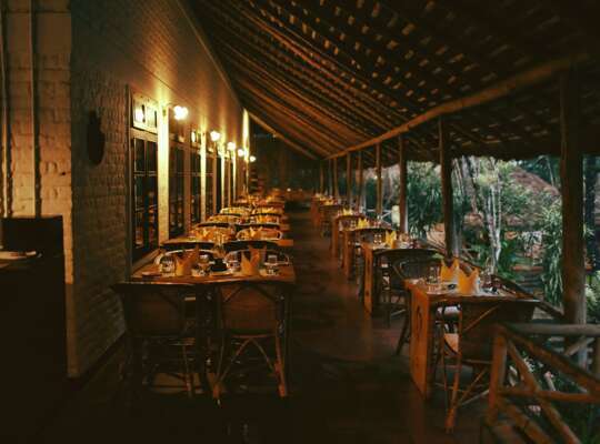 Organic and ethically sourced dishes are served in the resort's two main restaurants. Dishes include spiced quail and cardamom chicken curry and a huge range of thalis, a signature regional dish. After dinner, visit the bar where the 100-year old billiards table is the central feature.