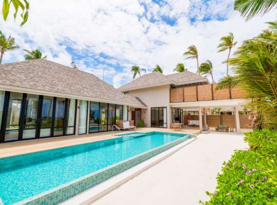Stay in a Two-Bedroom Beach Pool Villa for maximum comfort and space. These villas can accommodate up to 4 adults and 2 children, making them ideal for families or multi-generational trips. Each level features a large bedroom with a double bed and its own bathroom, so no waiting around for showers!
