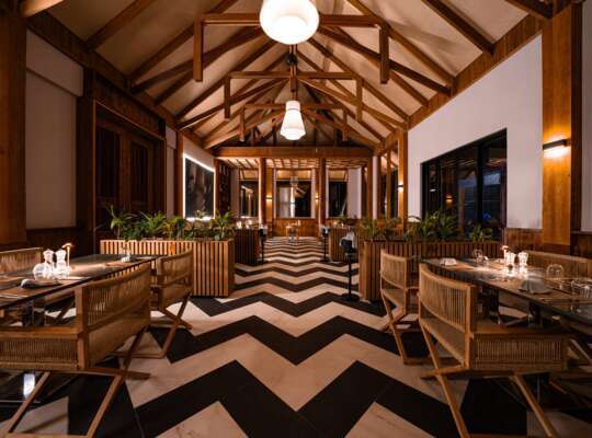 Situated on the bridge between the two islands, this European inspired restaurant, specialising in cutting edge Italian and Mediterranean fine dining, is a perfect place to have a sundown dinner whilst watching the fish swim in the water beneath you. Due to the extended fine dining experience on offer at this restaurant, we recommend Luna for guests 8 years and above.