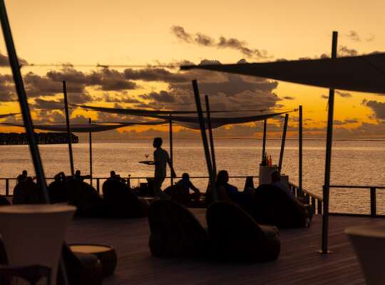 Ultra-comfy lounging, with daybeds and huge tables on a deck at the water’s edge. There are canopies for shade in the heat of the day. Tapas and expertly mixed cocktails will see you through the evening.