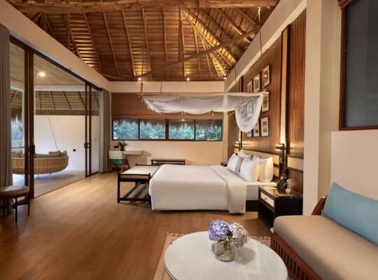There are only 36 rooms and these are set in thatched buildings that seem to cling to the hillside. Each room, from Deluxe to Premier Deluxe, has unbeatable views over the surrounding landscapes and a charming vibe with dark wood furnishings and a furnished balcony. For a honeymoon treat, the top-of-the-range Grand Executive Suite is the only accommodation with its own plunge pool.