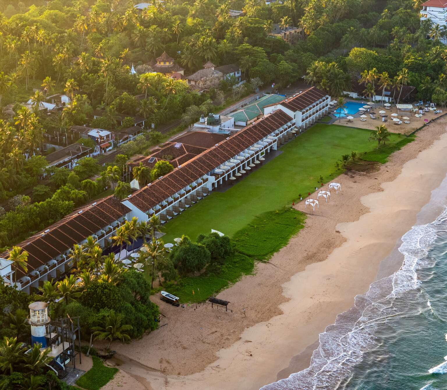 This modern hotel, with beautifully landscaped grounds beside a broad golden beach, is an inviting spot to start or end your holiday.
