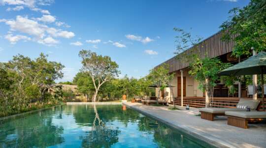 Bordering the Wilpattu National Park, this jungle hideaway has thatched-roof villas with private plunge pools