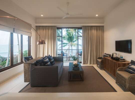 There are just 10 bedrooms, each one thoughtfully designed by Annika Fernando with colourful Batik art, hand-crafted furnishings and bespoke touches. Calming tones create a bright and airy atmosphere whilst wooden accents add warmth. Kumu Bedrooms are the most basic, yet still beautiful with teak panelling and modern rain showers. One step up from that are the Oceanview bedrooms with furnished outdoor spaces overlooking the Indian Ocean. Oceanview suites are a bit more generous with huge bathrooms, living areas and either sea-facing balconies or direct pool access.