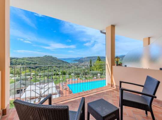 A great option if you’d like your Lake Garda with a little altitude. Boffenigo sits on a panoramic hill above Garda town, surrounded by greenery, with the lake laid out in front of you. The mood is relaxed, slightly grown-up, and very geared towards the good bits of a holiday: lazy pool mornings, a spa session when the sun gets too enthusiastic, then that moment when everyone drifts towards the terrace because the light is magical. You’re only a short drive from the lakeside towns, but the whole point is you don’t have to be in the middle of them to enjoy them.