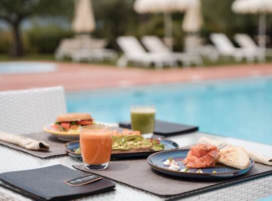 Dining centres around the panoramic terrace restaurant, which focuses on seasonal Italian cooking in a relaxed setting overlooking the lake. During the day the pool bar takes care of the essentials: cold drinks, cocktails, ice cream, and easy lunch options like burgers and sandwiches. Basically everything you want when you’ve declared the day a swim day.