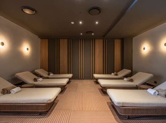 The Aurum Spa wellness area is a proper reset button. Sauna, biosauna, steam room, emotional showers, an ice waterfall, relaxation zones and a tea lounge, plus treatments if you want to fully commit to doing nothing afterwards. There’s also a Technogym-equipped gym for anyone who likes to keep the routine ticking over, and an indoor pool within the spa for cooler days.