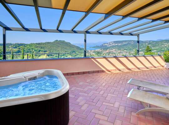 Breathtaking panoramic views of mountains and Lake Garda from every corner.