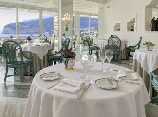 The restaurants Le Ginestre (used in low season) and Le Querce (used in high season) provide different perspectives over Sorrento and the Bay of Naples and serve a wide range of traditional and international dishes. The grill restaurant Bougainvillea is ideal for relaxing among the olive trees near the pools and enjoying snacks, lunch or a barbecue, whereas the à la carte Restaurant Bellevue is the place to go for a romantic dinner.