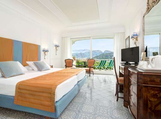 Stylish and elegant, the 184 rooms and suites overlook the hotel's fragrant gardens or the Bay of Naples. The interiors include marble bathrooms and inlaid furniture, a typical feature of Sorrento. It's worth considering a Double Sea View Balcony Room for views of the bay, Sorrento or Mount Vesuvius.