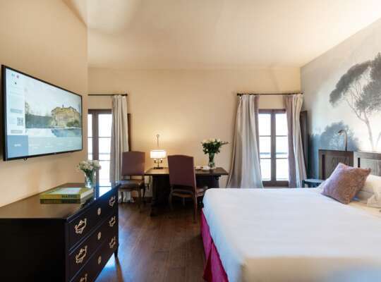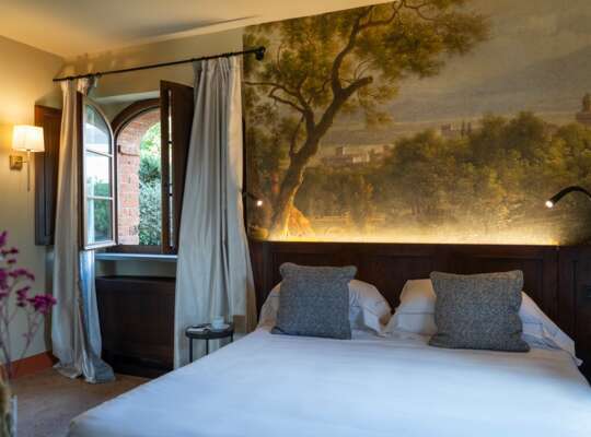 There are 68 rooms and suites, and because they sit within centuries-old buildings they vary quite a bit in shape and layout. The look is classic Tuscan rather than sleek design hotel, with warm colours, stone, wood and traditional fabrics, but it feels fresh rather than overly rustic. Superior rooms are comfortable for two, but if you like space to spread out the step up to a Deluxe room is often worth it, as they are noticeably larger and some can connect for families. Prestige rooms add even more space and can accommodate a third guest. Suites bring separate or partially separated living areas, which are useful if you plan to spend relaxed time in your room rather than just treating it as a base.