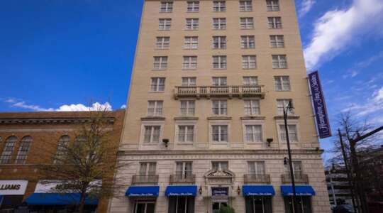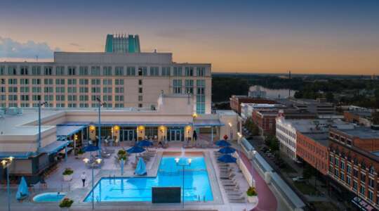 A riverfront hotel with a rooftop pool and easy access to Downtown Montgomery.