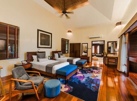 Just steps from your villa, the coral reefs of Polish Bay are teeming with life. Grab a snorkel and float above vibrant coral gardens, or join a guided dive* to meet turtles, rainbow-hued fish, and if you're lucky, even a passing whale shark. The resort’s PADI-certified dive centre makes it easy for beginners and seasoned divers alike to explore the underwater world.