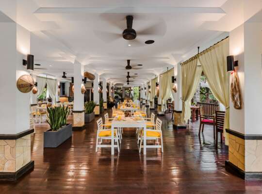The main restaurant where you can dine al fresco with panoramic views. This restaurant is open daily for breakfast, lunch and dinner and serves up a mixture of local dishes as well as western favourites.